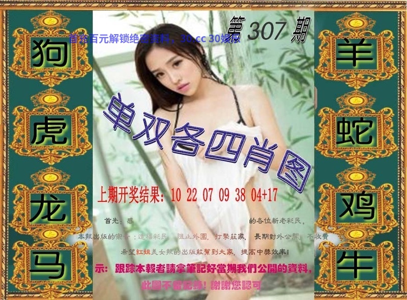 312期:九肖牛猴马猪狗羊龙虎兔开:發00准